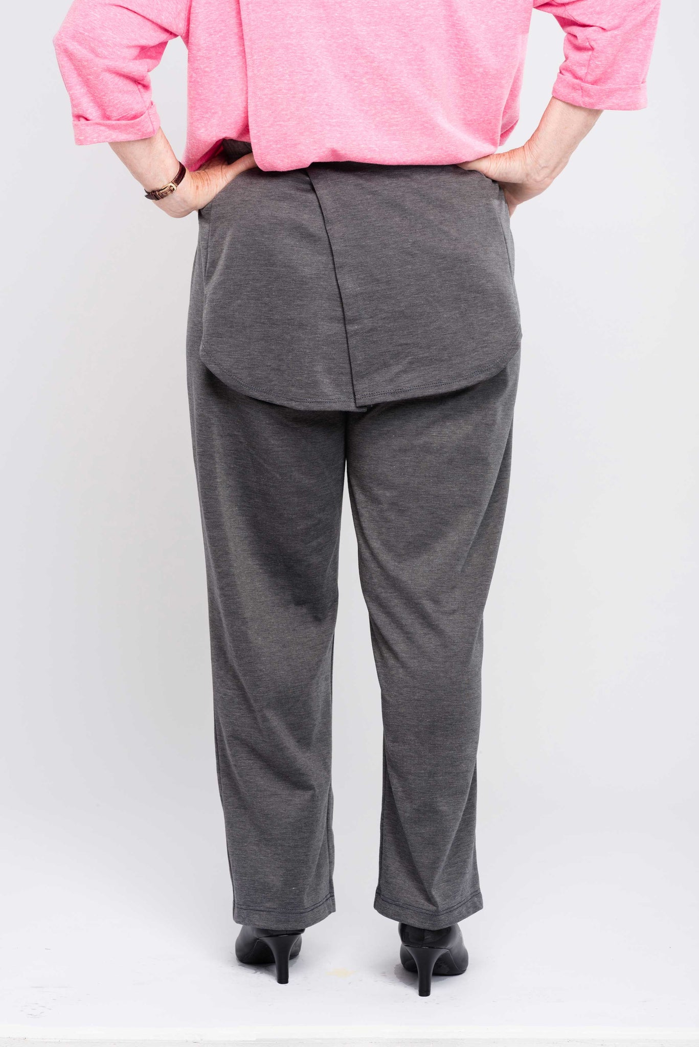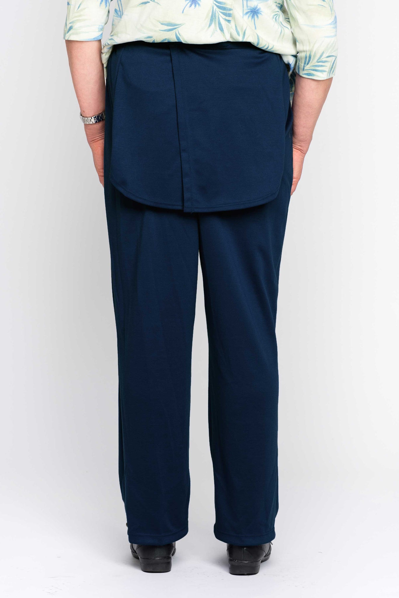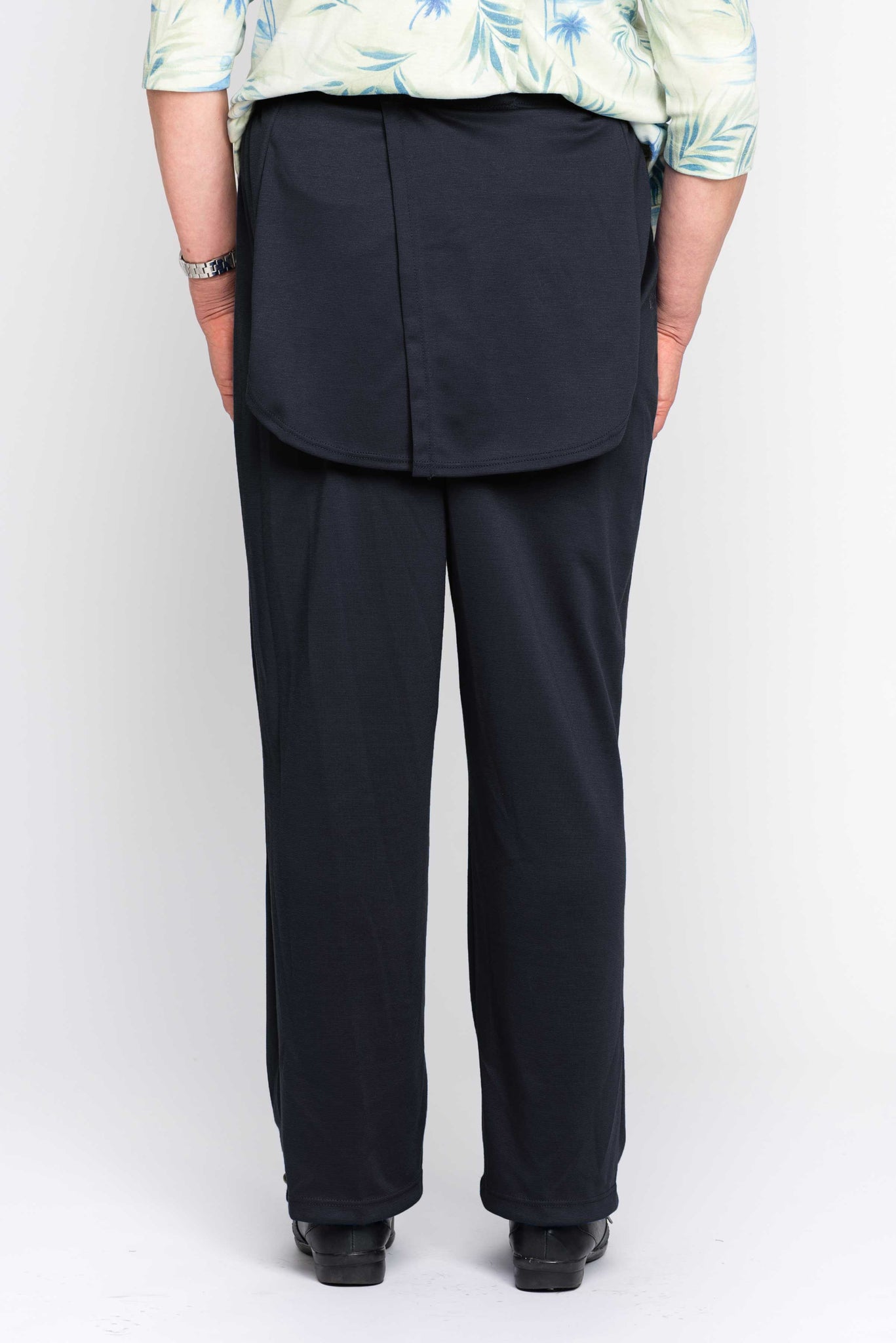 Pants with large side openings that close with snap fasteners. Elastic waistband and loose fit for added comfort. Made from soft, comfy knit fabric.